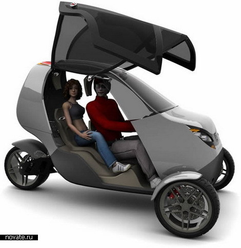 А это транспортное средство объединяет в себе и велосипед, и автомобиль. В нем есть и мотор, работающий на биодизеле, и педальная тяга, работающая от ног двух его пассажиров. Так что на таком велосипеде хоть в дождь, хоть в снег, хоть в кризис.